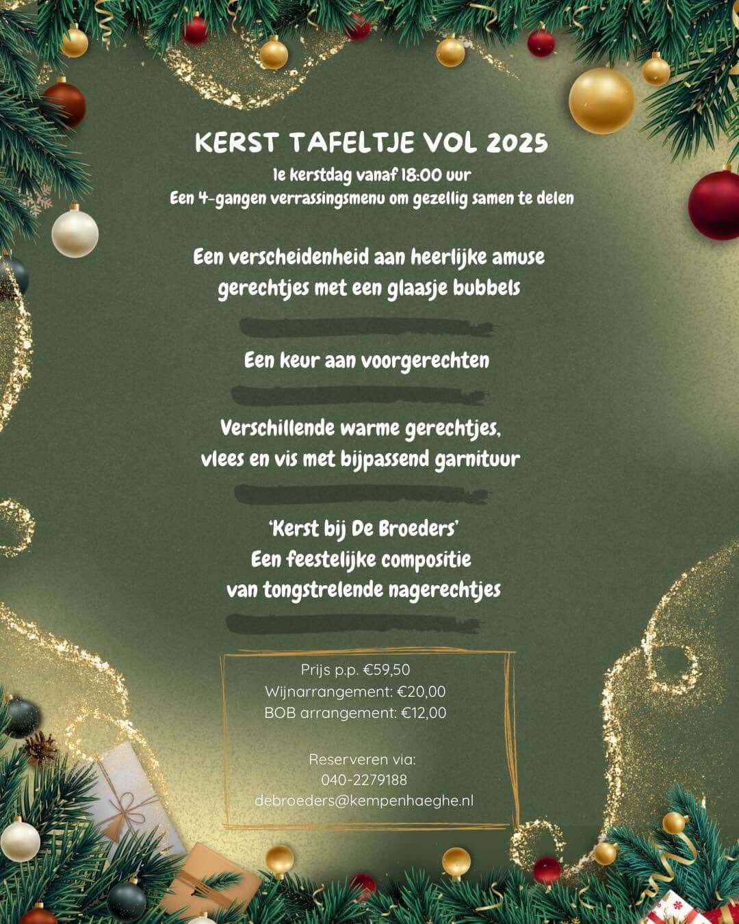 Natuurlijk bent u tijdens de kerstdagen van harte welkom bij De Broeders!
